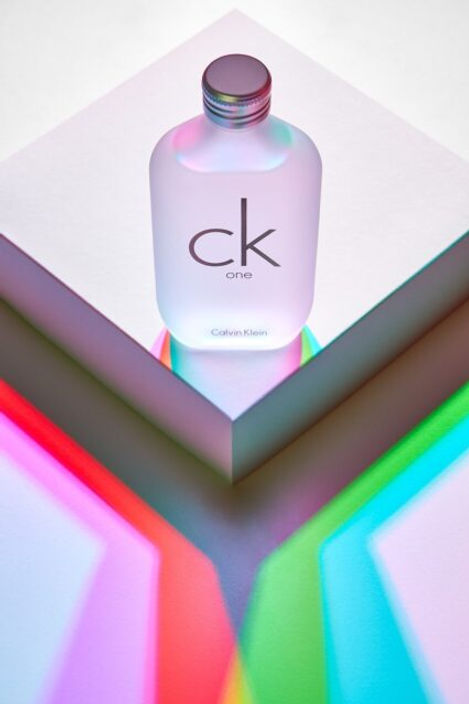 這組作品運用 RGB 加法混色原理,讓香水瓶在三色重疊處呈現自然色彩,而陰影則分離成鮮明的彩色層次,打造出充滿幻彩的視覺效果。